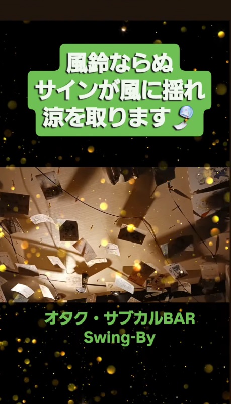 風鈴ならぬサインが風に揺れ涼を取ります🎐 #オタクバー #漫画家サイン