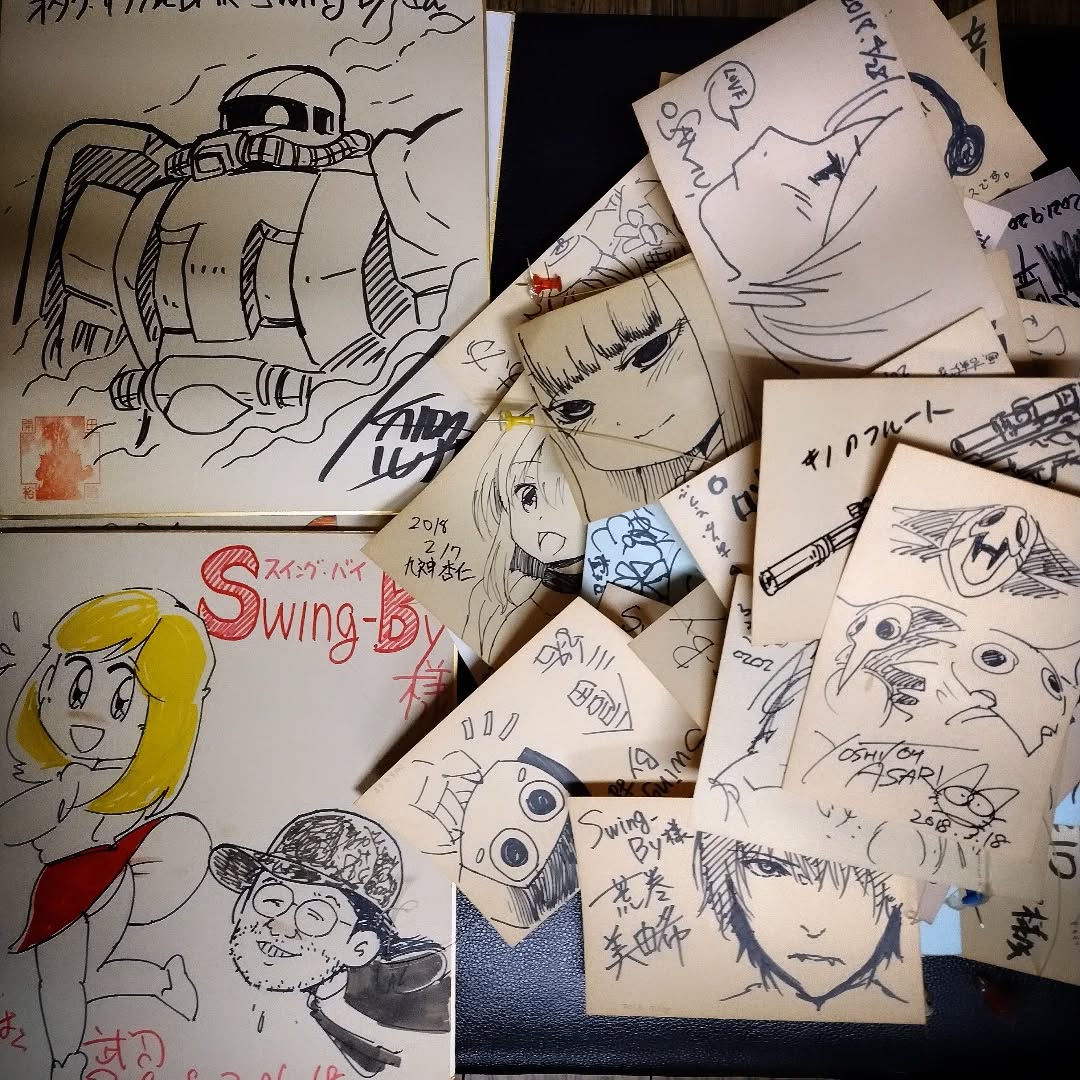 天井のサイン色紙&カード、明日のコミック1へ✒️