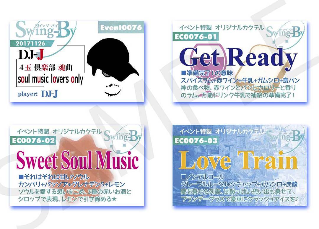 11/26 #ソウル イベント用イベントカードとオリジナル #カクテル カード。カクテルは後日も作りますが、カードは当日配布のみです。Get Ready 900円Sweet Soul Music 800円Love Train 700円#オタクバー #DJ