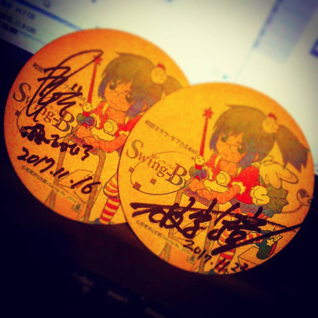 先日お会いした、 #漫画家 の #瀬口たかひろ さん @takahi_RO と #破李拳竜 さんに当店コースターに #サイン して頂きました。飾る場所を作らないと! #mangaartist #autograph