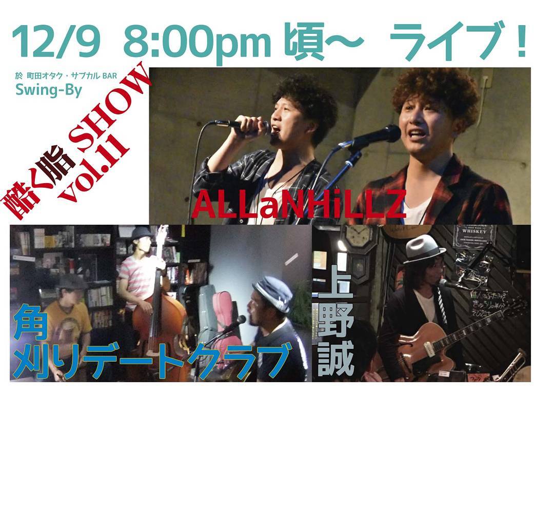 12/9 #ライブ 酷く脂SHOW vol.11 角刈りデートクラブ、ALLaNHiLLZ、上野誠 #オタクバー