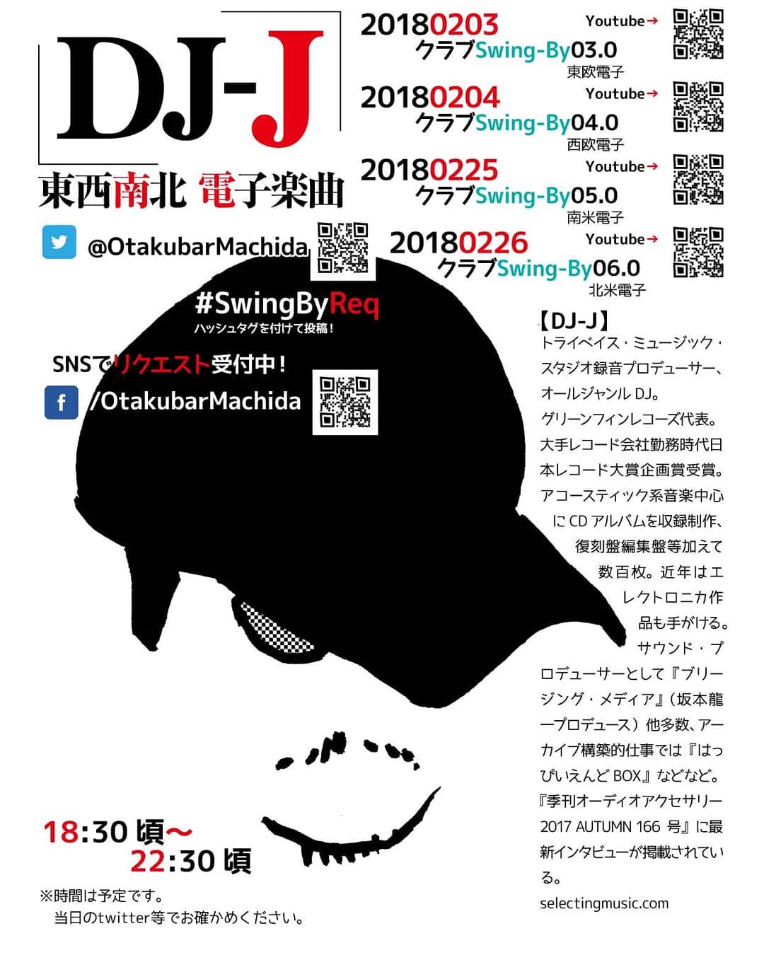 2月の #DJ #イベント も全て #クラブ です。2/03 東欧電子2/04 西欧電子2/25 南米電子2/26 北米電子ミュージックチャージ1,000円(1drink付)#リクエスト募集中 #swingbyreq