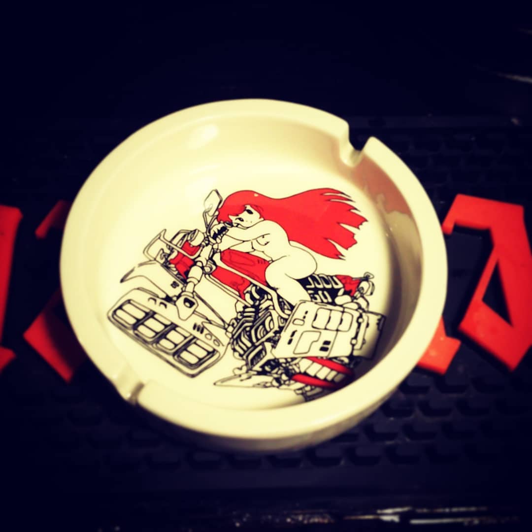 #常連 さんより。 #ガイナックス の前身、 #ゼネラルプロダクツ の灰皿。 #庵野秀明 さんの絵かな? #オタクバー
