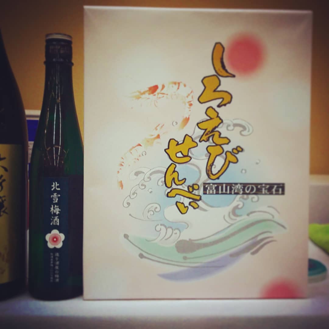 お店の #常連 さんからの差入れ、 #しろえびせんべい と #北雪梅酒 ! #SF大会 #日本SF大会 #SF57 #オタクバー