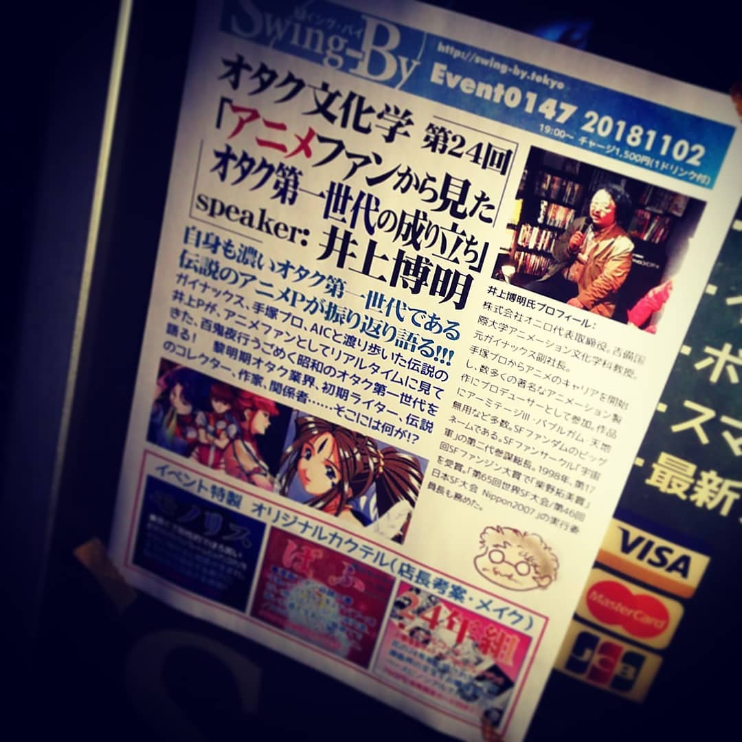 本日は #井上博明 P、 #オタク文化学 「 #アニメファン から見た #オタク第一世代 の成り立ち」。お待ちしてます! #オタクバー