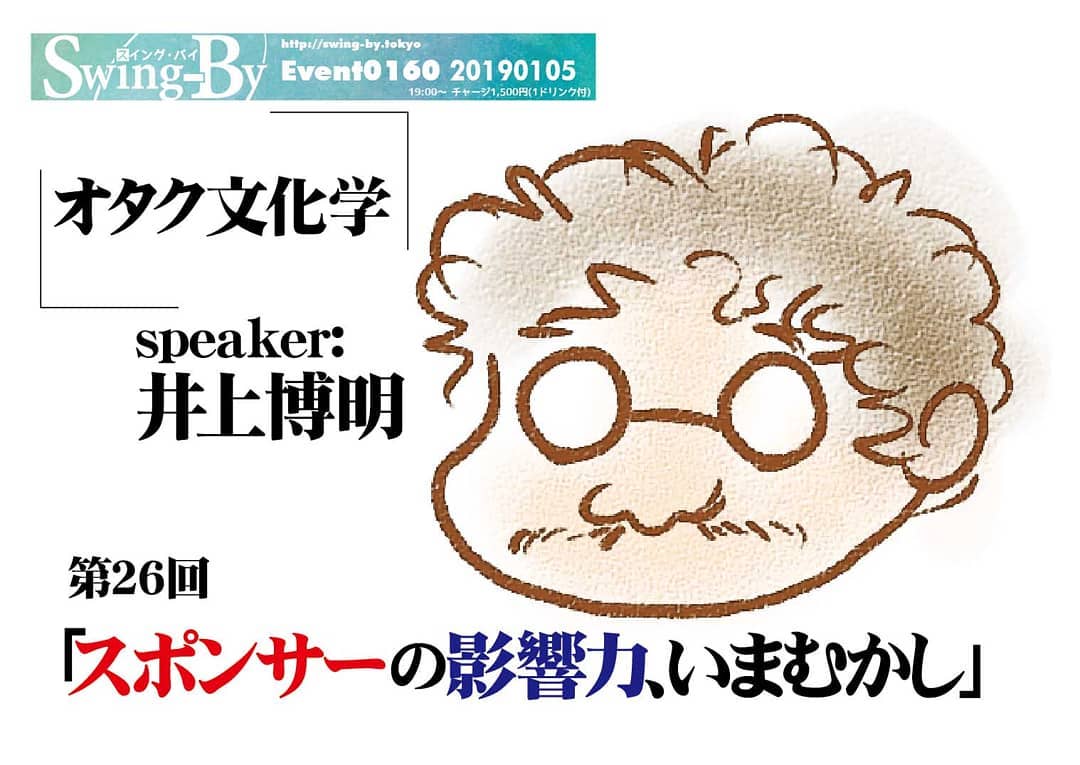1月の #イベント 5日 #井上博明 P #オタク文化学 「 #スポンサー の影響力」、 #DJ-J 11日 …