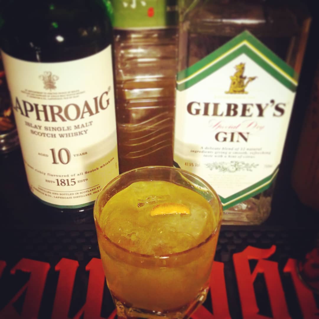 来週末の #ぢーな塾 オリジナル #カクテル 、 #京都野宿 。 #ラフロイグ に #緑茶 と #柿の種 ! #オタクバー