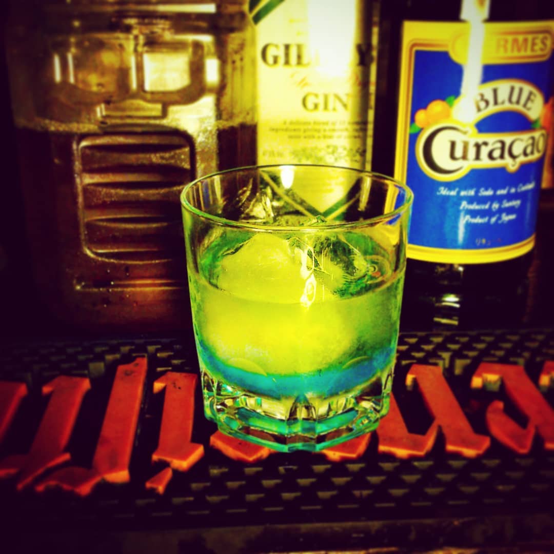 Instagramより。 週末の #ぢーな塾「#かんたんパース術マンガvsアニメ」用オリジナル #カクテル、#水平線。大地と空の境界線。#オタクバー