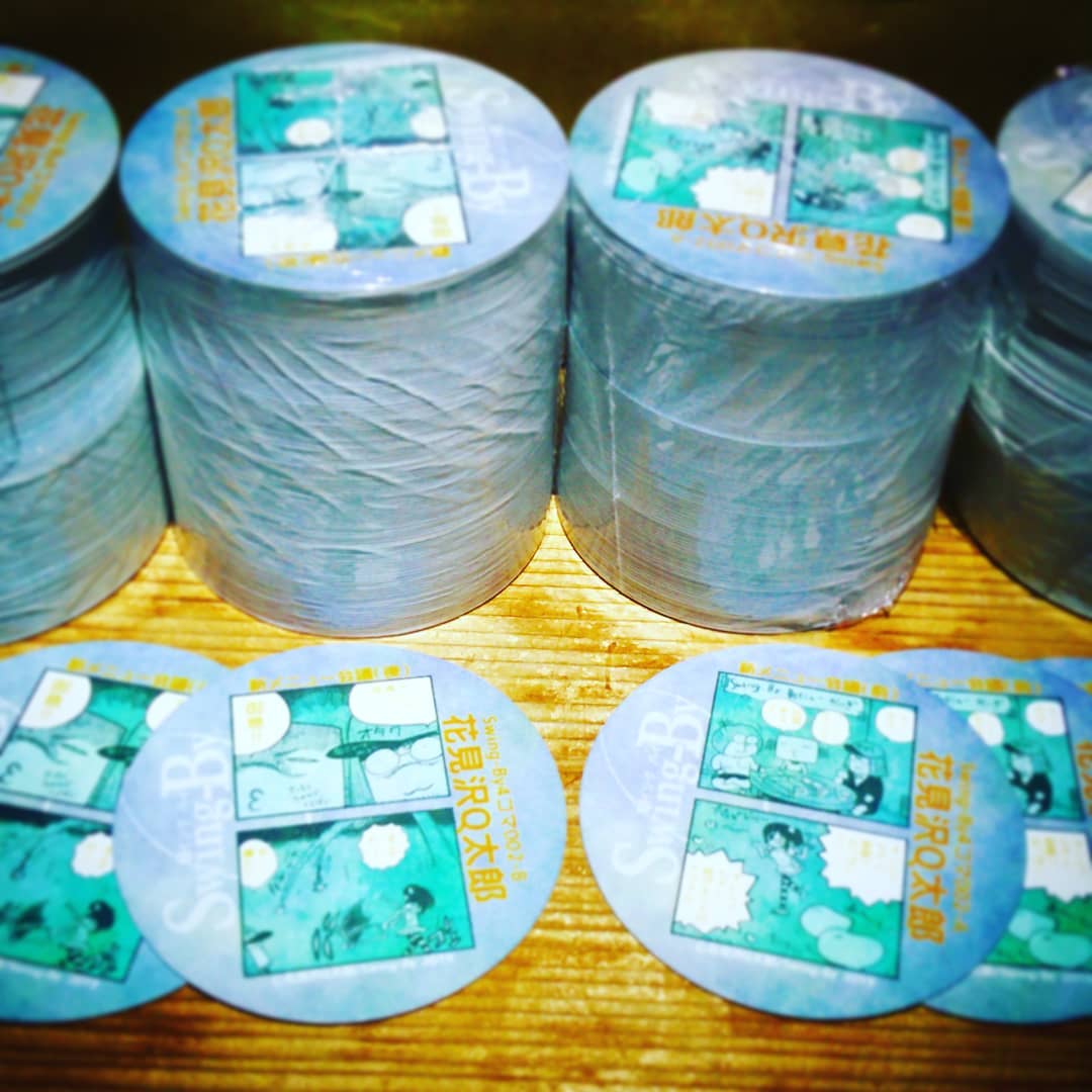 #SwingBy 名物、#花見沢Q太郎 先生 #4コマ漫画コースター 第2弾完成! 開店です♪(本日も手の混んだフード&グラス無し営業です)#オタクバー