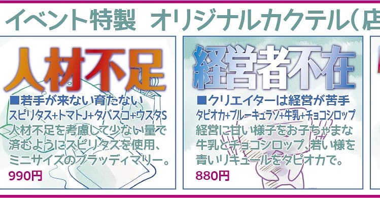 '19 11/2 #オタク文化学 第36回「増える #アニメ会社の倒産」http://bit.ly/2MHb2sa #オタクバー990円(強め) #人材不足 880円(爽やか) #経営者不在 770円(ノンアル) #ダンピング