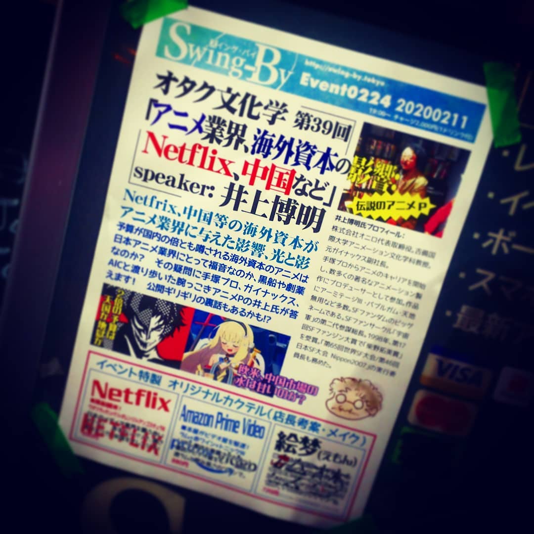 - #アニメP #井上博明 氏 #トークイベント、#オタク文化学「アニメ業界、海外資本の影響:#Netflix、中国など」 #オタクバー