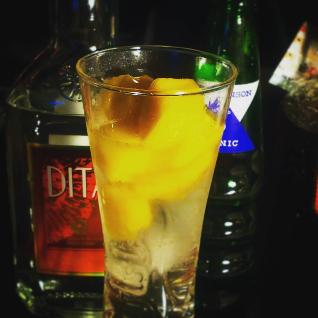 今週末の #UKバンド特集 用 #オリジナルカクテル、#クイーン。#冷凍マンゴー 入り #ディタトニック。#オタクバー