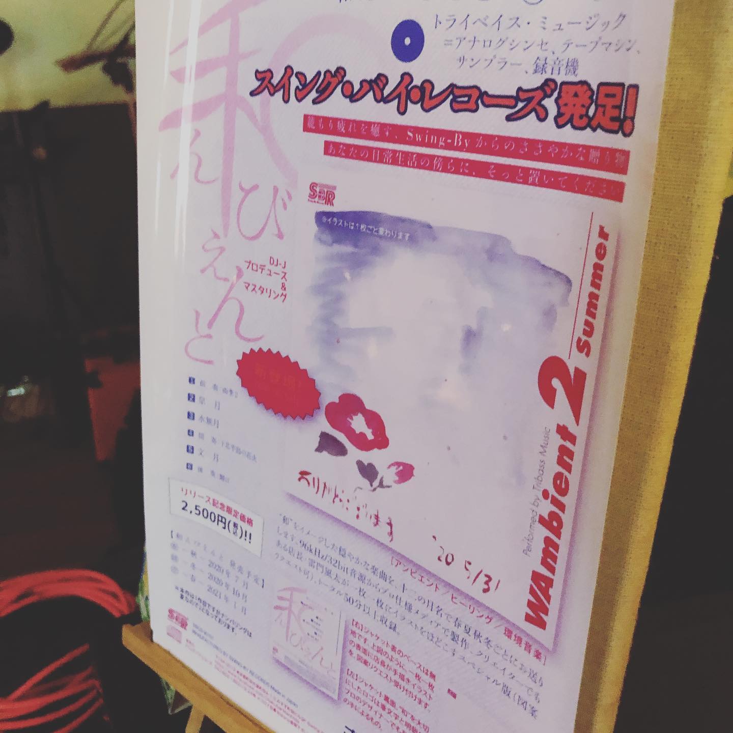 ![#和んびえんと 弐 〜夏〜(CD)[アンビエント/ヒーリング/環境音楽]アーティスト:トライベイス・ミュージック(アナログシンセ、テープマシン、サンプラー、録音機)プロデュース&マスタリング:DJ-Jスイング・バイ・レコーズ発足!籠り疲れを癒す、Swing-Byからのささやかな贈り物。あなたの日常生活の傍らに、そっと置いてください。 “和”をイメージした穏やかな楽曲を、十二の月名で春夏秋冬ごとにお送りします。96kHz/32bit音源からプロ仕様メディアで製作、クリエイターでもある店長・雷門風太が一枚一枚にイラストをほどこすスペシャル版(図案リクエスト可)。トータル50分以上。1 前奏:雨季22 皐月3 水無月4 間奏:下北半島の花火5 文月6 後奏:蝉は ※本作は1作目ですがナンバリングは夏なので2となっています。SBCD-90101https://otakuswingby.base.ec/items/29931150](https://swing-by.tokyo/wp-content/uploads/2020/06/106032262_3841026349301647_6044360097182031213_n.jpg)