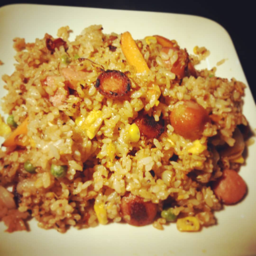 #試作メニュー、#具だくさん #ピリ辛ニンニクチャーハン。ありかも。#まかない #夜食 #オタクバー