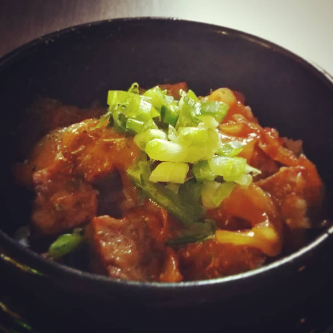 本日の #限定ランチ、#ラム肉の肉豆腐。甘くて絶品! お供にライスをどうぞ。#オタクバー #フード