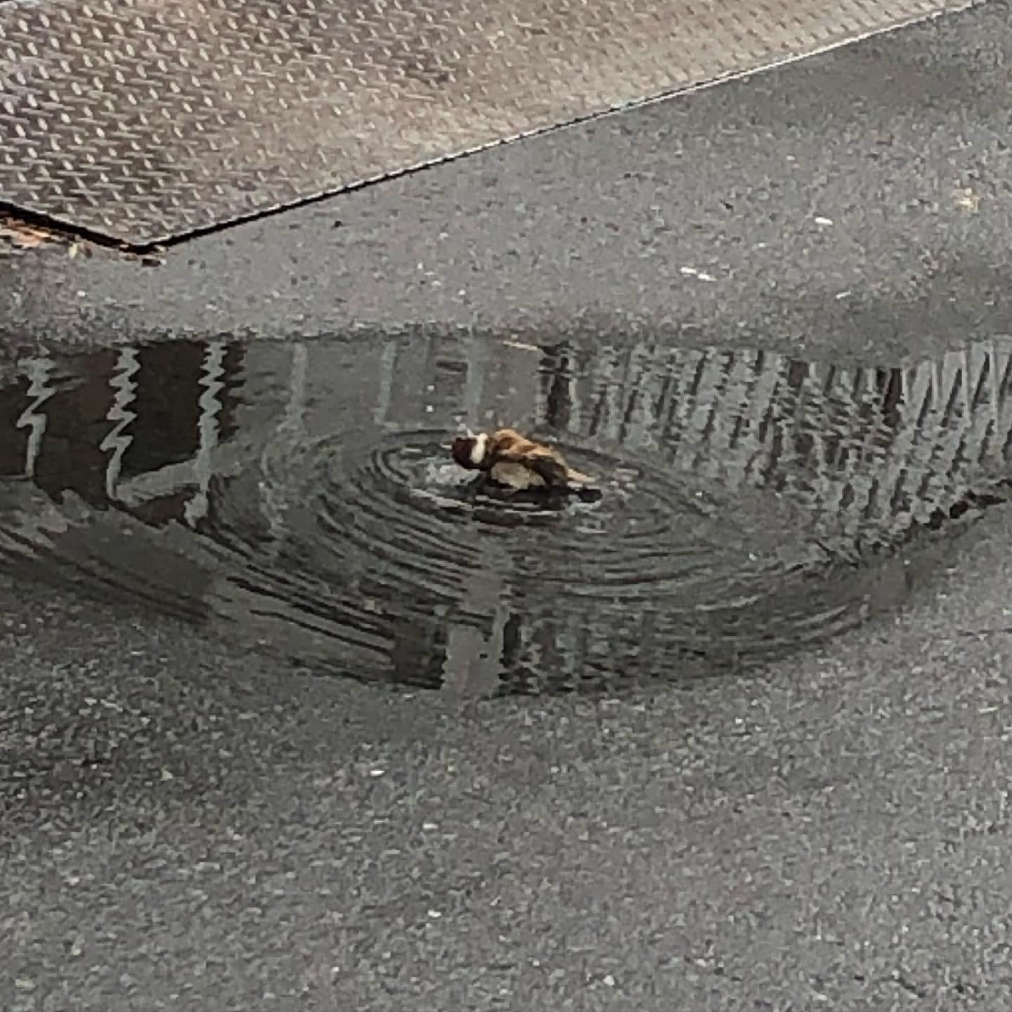 道路で水浴びしていた雀ちゃん 本日もswingーby元気にOPENです #オタクバー
