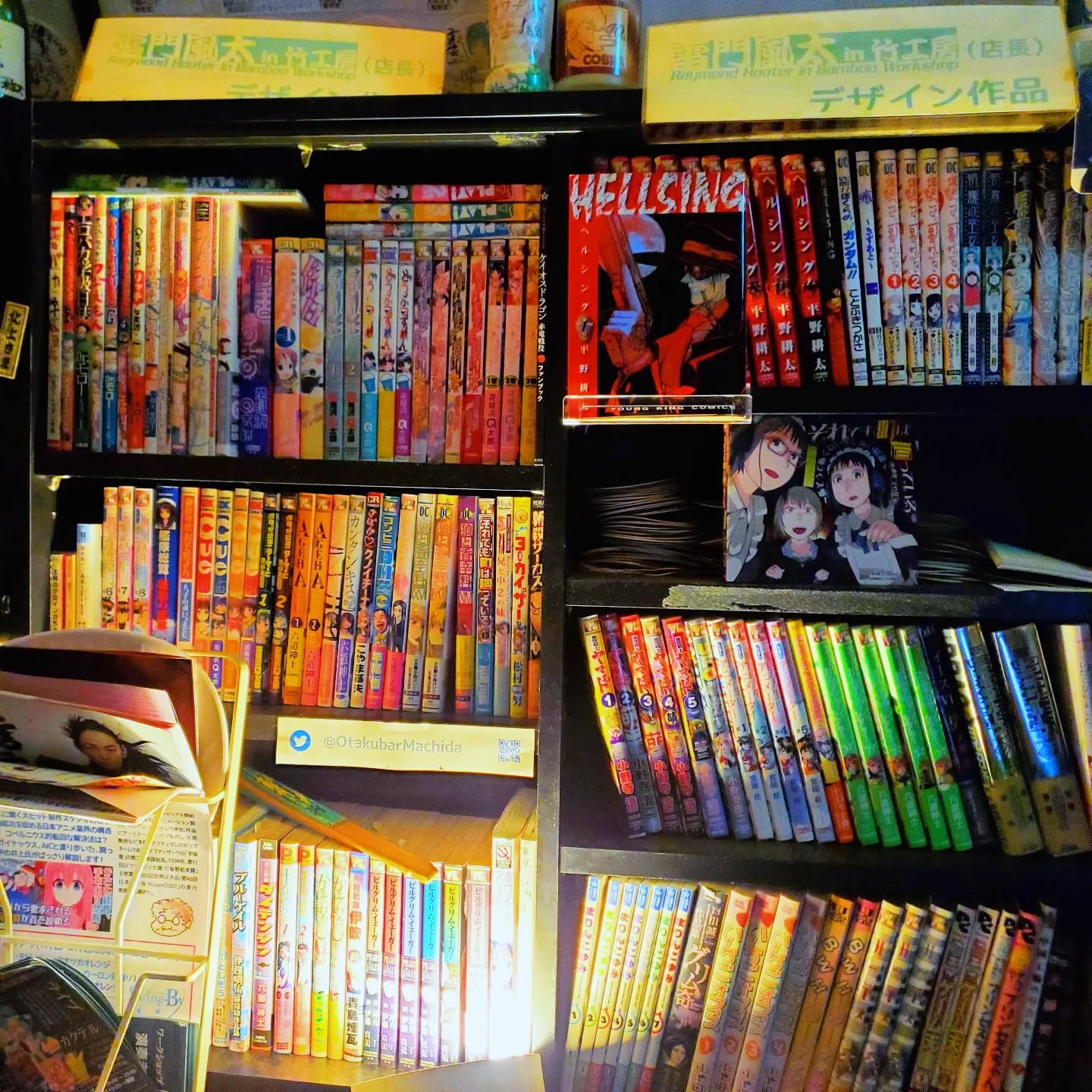 当店入り口近く本棚には店長表紙デザイン本コーナーが御座います。ぜひお手に取ってご覧ください。本日も皆さまのお越しをおまちしてまーす#オタクバー #町田 #杏東ぢーな #雷門風太 #日曜営業 #U25割 #はじめての女性は1杯無料 #美味しい生ビール #今季アニメ #ボードゲーム #カードゲーム #喫煙可能