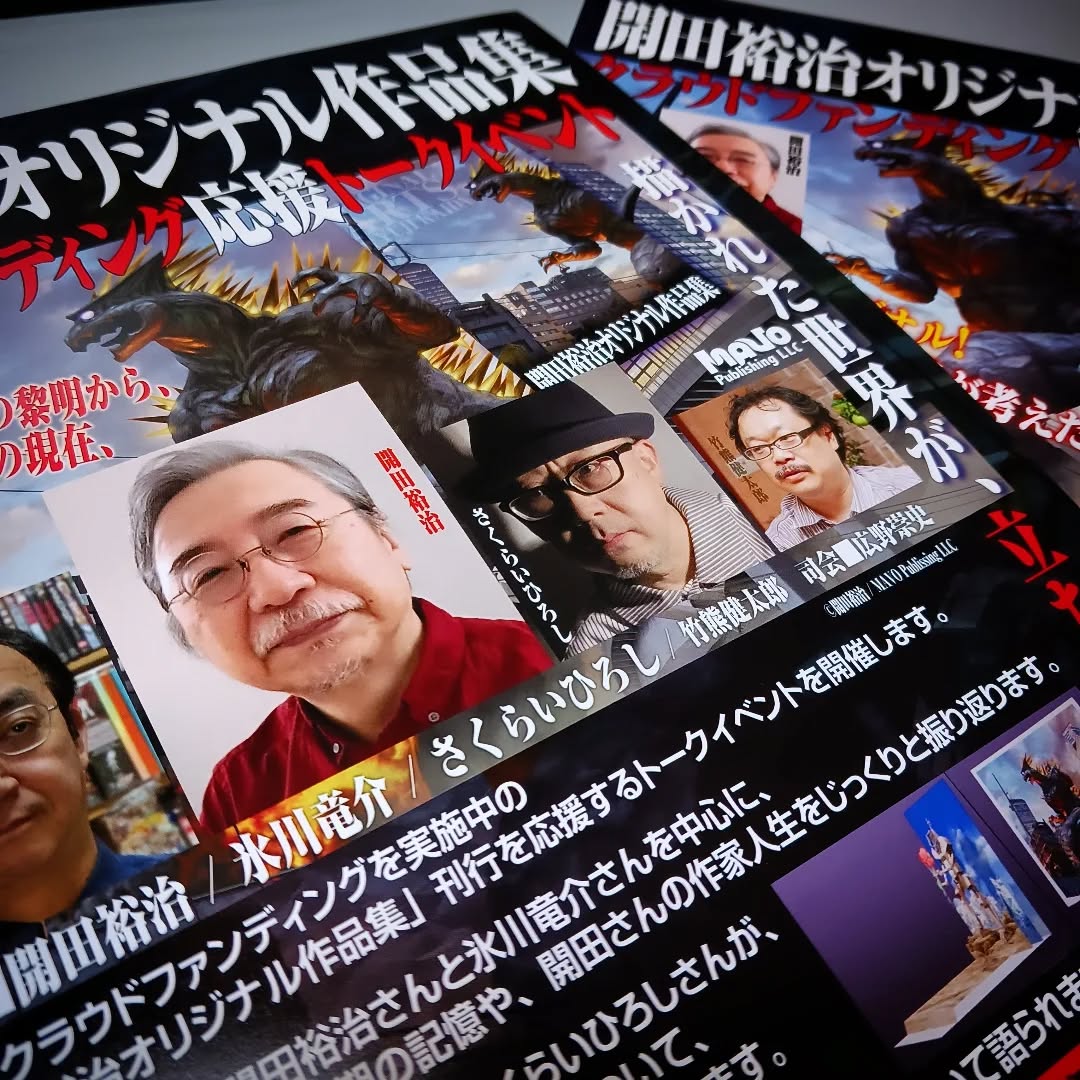 開田裕治オリジナル作品集クラウドファンディングのチラシ2種完成!(店長デザイン)1/12の開田・氷川両氏トークショー@神保町は超注目です。まずは当店とコミケで配布します♪https://motion-gallery.net/projects/kaidayuji_mavo#開田裕治 #開田裕治オリジナル作品集 #さくらいひろし #氷川竜介 #竹熊健太郎