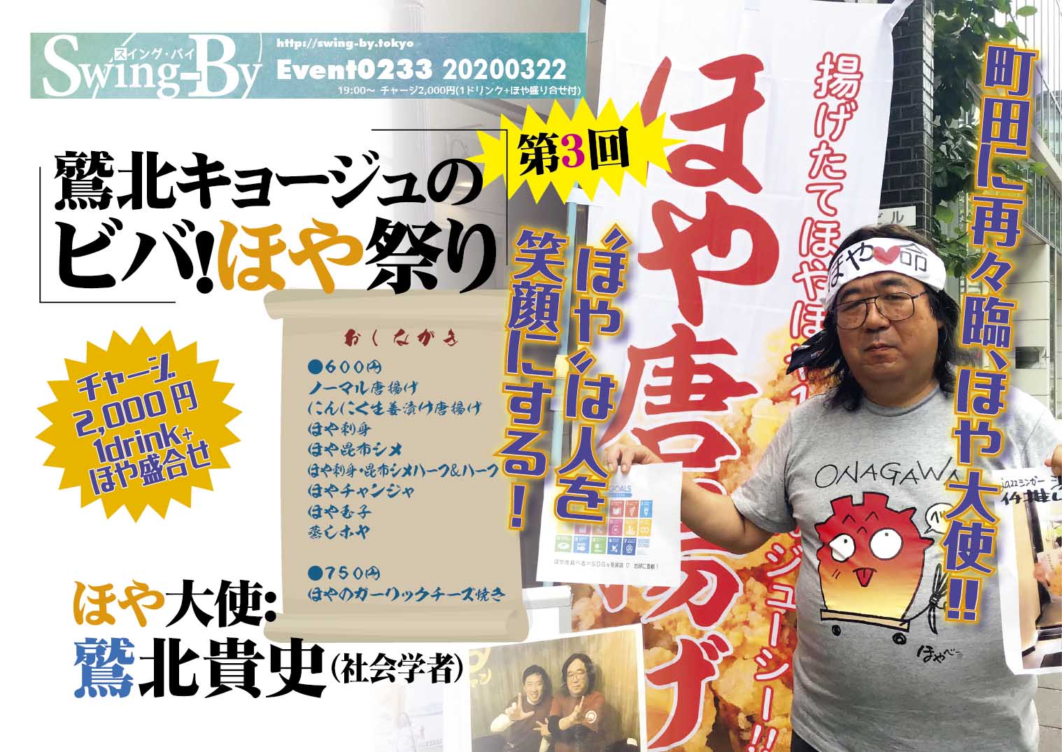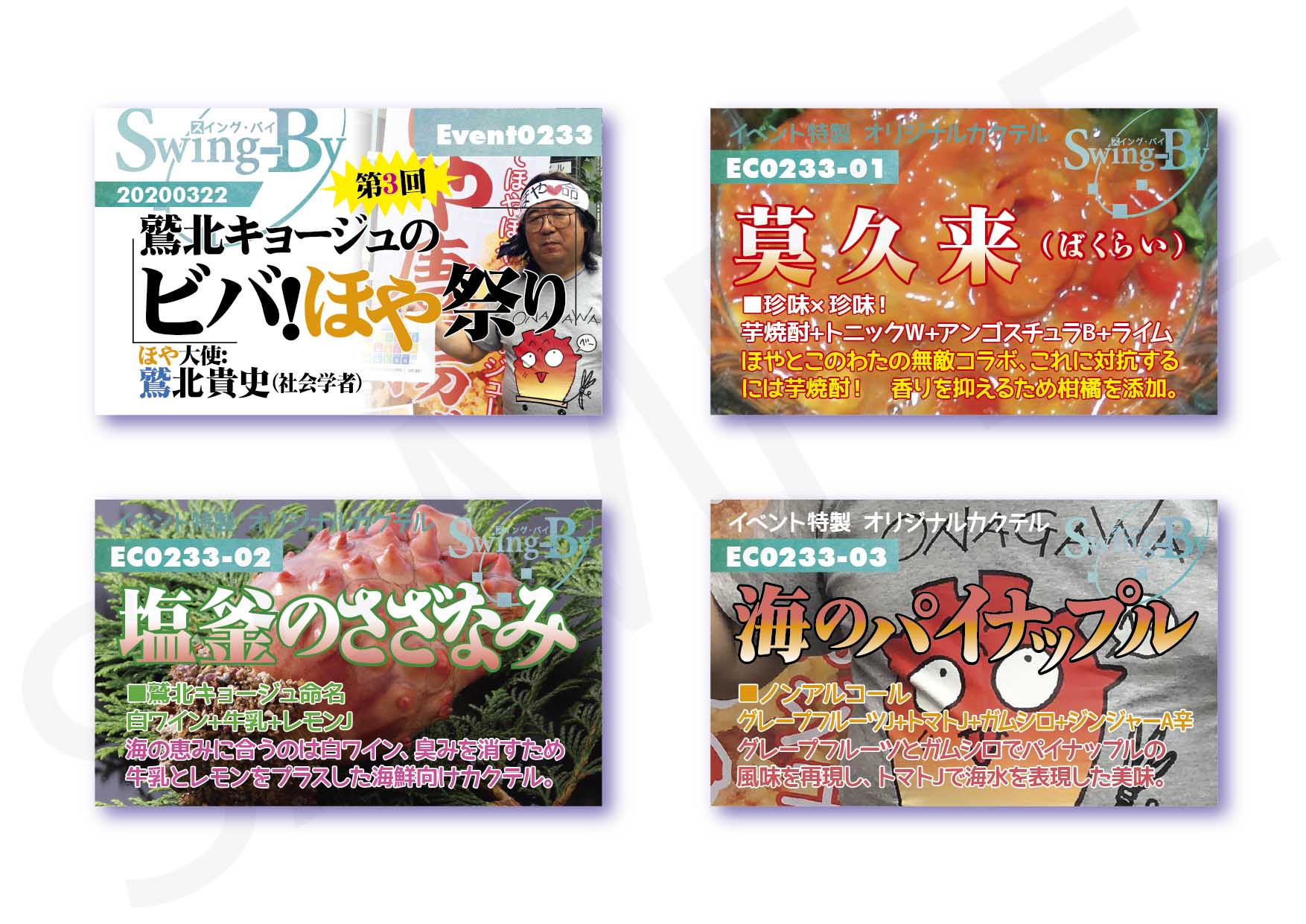 19時~ チャージ2,000円(1drink+ほや盛合せ) ほや大使: 北貴史(社会学者)
